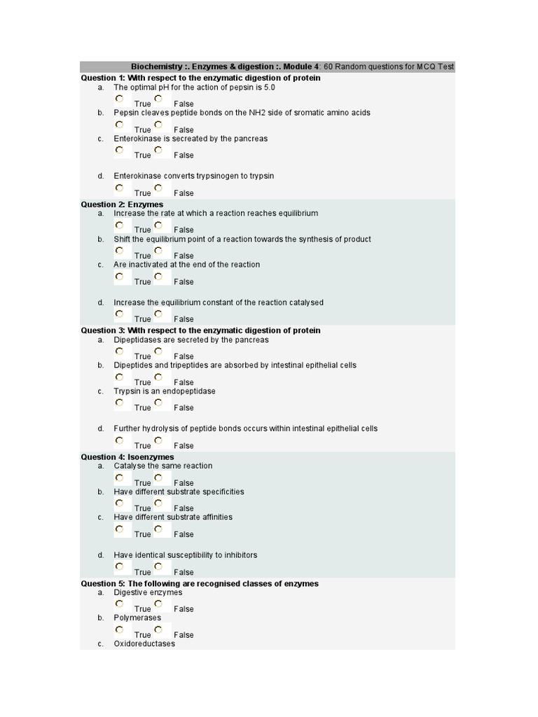 Biochemistry.EnzymesDigestion.Module460RandomQuestionsForMcq
